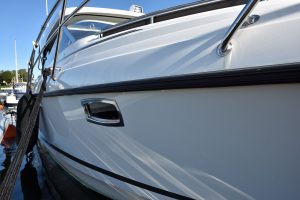 Den generösa bredden och trappstegen, möjliggör enkel passage från badplattformen direkt upp på skarndäck, vilket ger en känsla av walkaround. Det är lätt och säkert att röra sig akteröver ut mot den magnifika badplattformen. Här finns det gott plats för solstolar och badleksaker och nedsänkt i badplattformen döljer sig flera smarta luckor för förvaring. Här gömmer sig även det rostfria elmanövrerade ankaret.