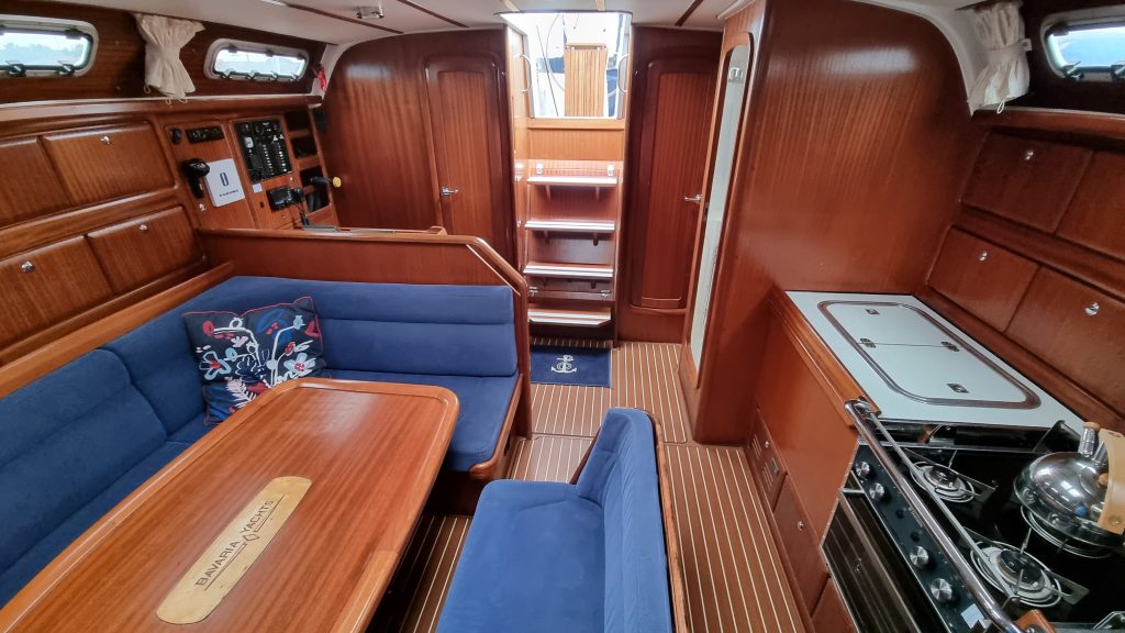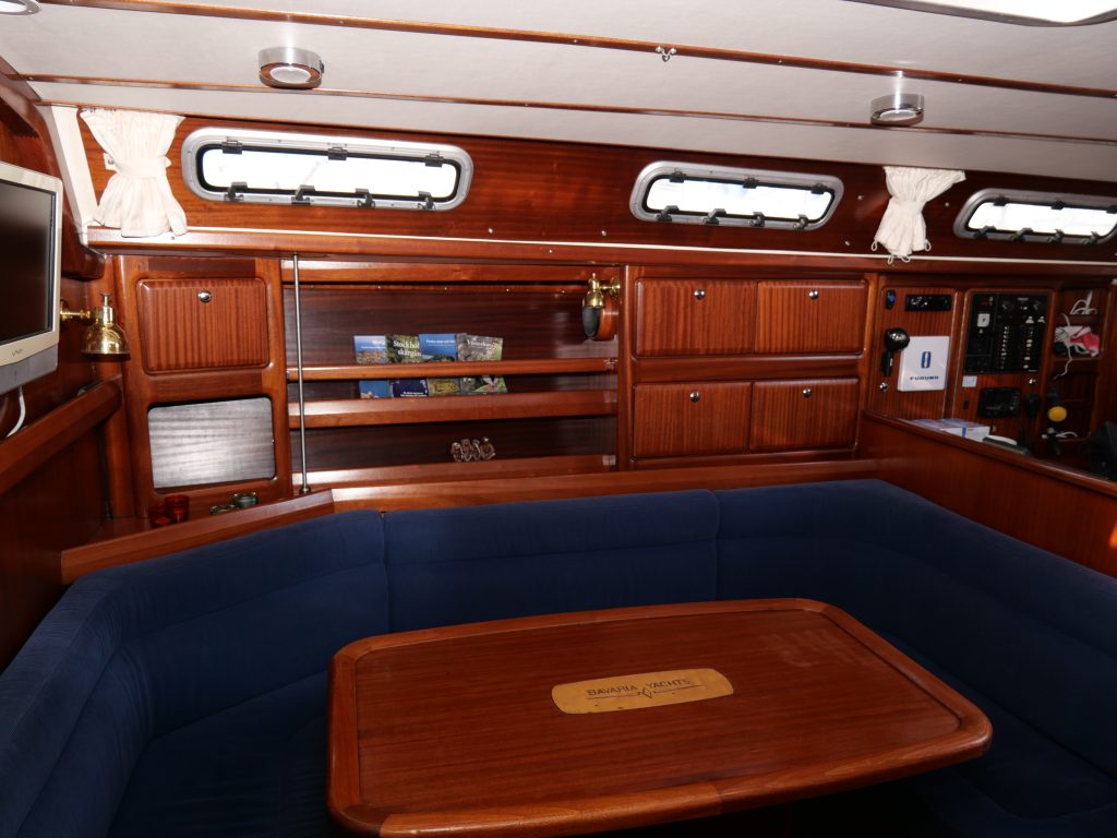 Bavaria 42 populär eftertraktad modell med 4 kabiner 8 kojer 2 toaletter och ny D2 50 från Volvo Penta. En härlig mahogny inredning med långpentry