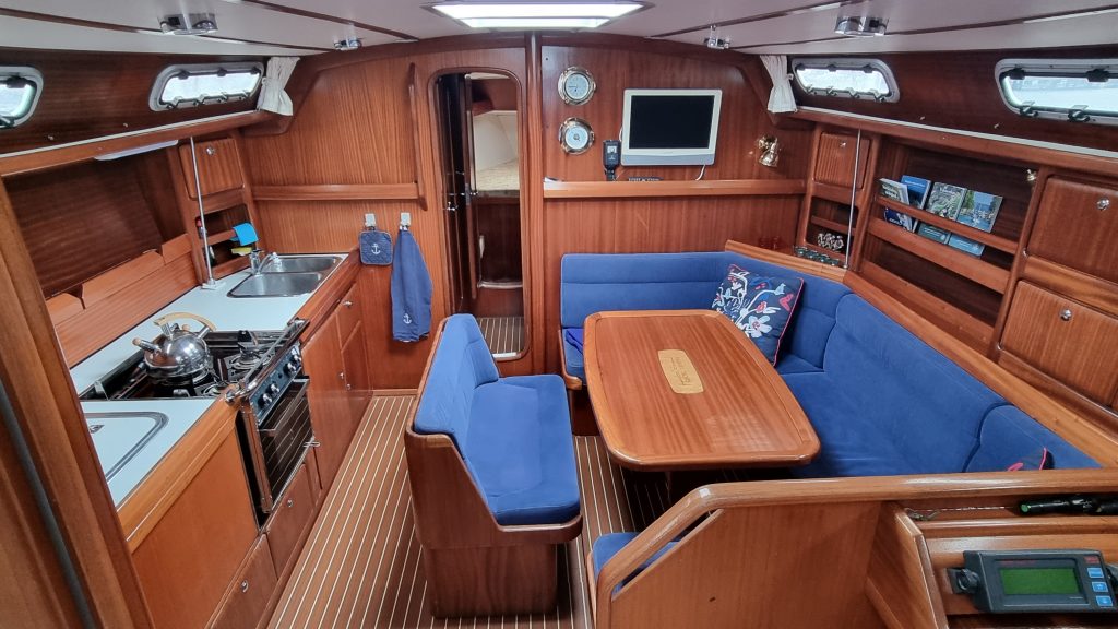 Här finns allt man behöver för sommarens seglatser för att trivas ombord i. Trots dryga 42 fot blir det ett lätthanterligt boende och seglande med all utrustning som finns ombord. Hissa segel, sätta kurs och aktivera autopiloten kan både besättning och kapten njuta efter det. En hel del saker är utbytt/uppdaterat med en dyr kostnad på en nyinstallerad motor Volvo Penta D2 50 från 2020 som bara har gått 115 timmar. Med dubbla ankarspel för/akter, bogpropeller, kyl, värmare, varmvatten nyare spis och stort härligt sittbrunns kapell har man det mesta ombord som önskas. Se PDF fil för en komplett utrustningslista. Båten kommer att vara land och sjö besiktigad och är ordentligt genomgången av Karlstad småbåtsvarv. Komplett köksutrustning medföljer.