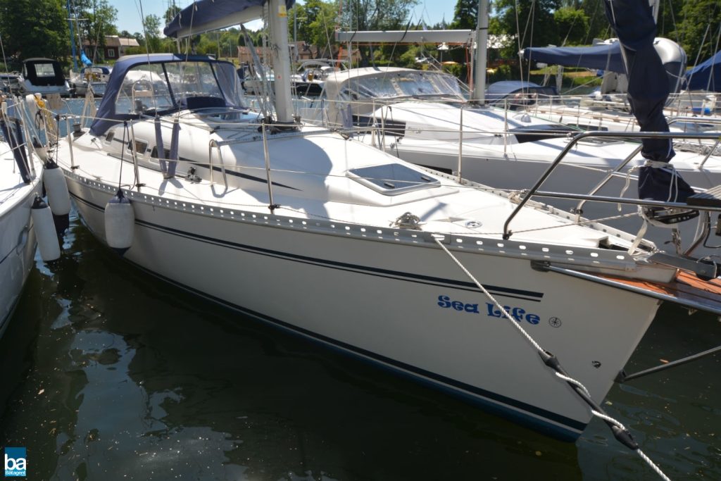 Med Elan 333 så skapade Elanvarvet en riktigt fin båt. Detta exemplar är dessutom utrustat med Scandinaviapaketet, vilket innebär extra skåp i salongen, teakklädda tofter, samt teak säväl i sittbrunn som på badbryggan och ett fällbart avlastningsbord.