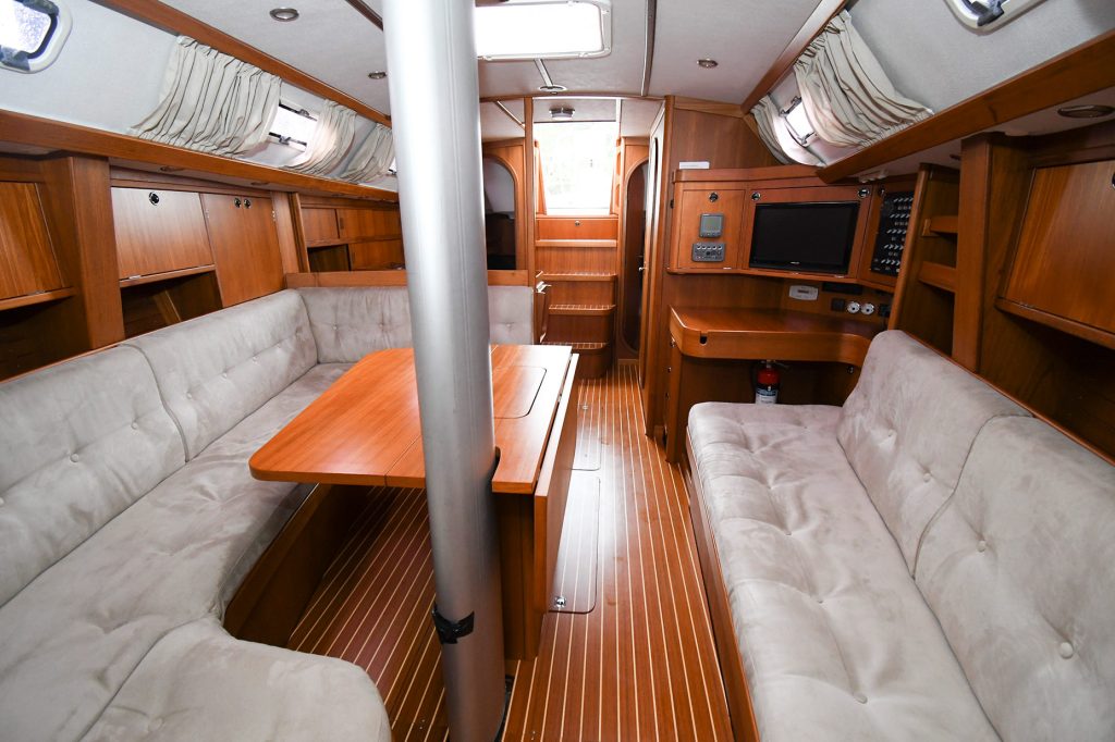 Detta exemplar är nummer 45, den sista tillverkade Finngulf 41:an. Båten är designad med tre kabiner för att ge bekväma kojplatser för totalt 6 personer. Pentryt är väl tilltaget med gott om stuvutrymmen och ytor att arbeta på. Salongen är ombonad och bekväm med två soffor och ett stort uppfällbart salongsbord. Båten är utrustad med det mesta man kan önska sig,