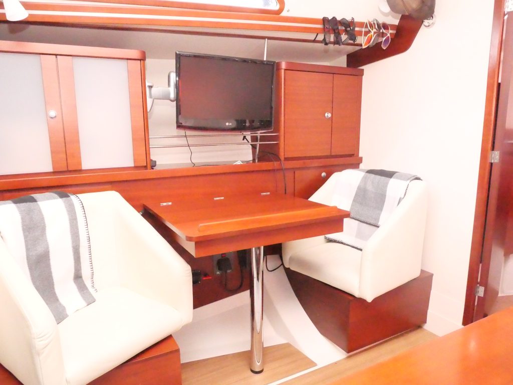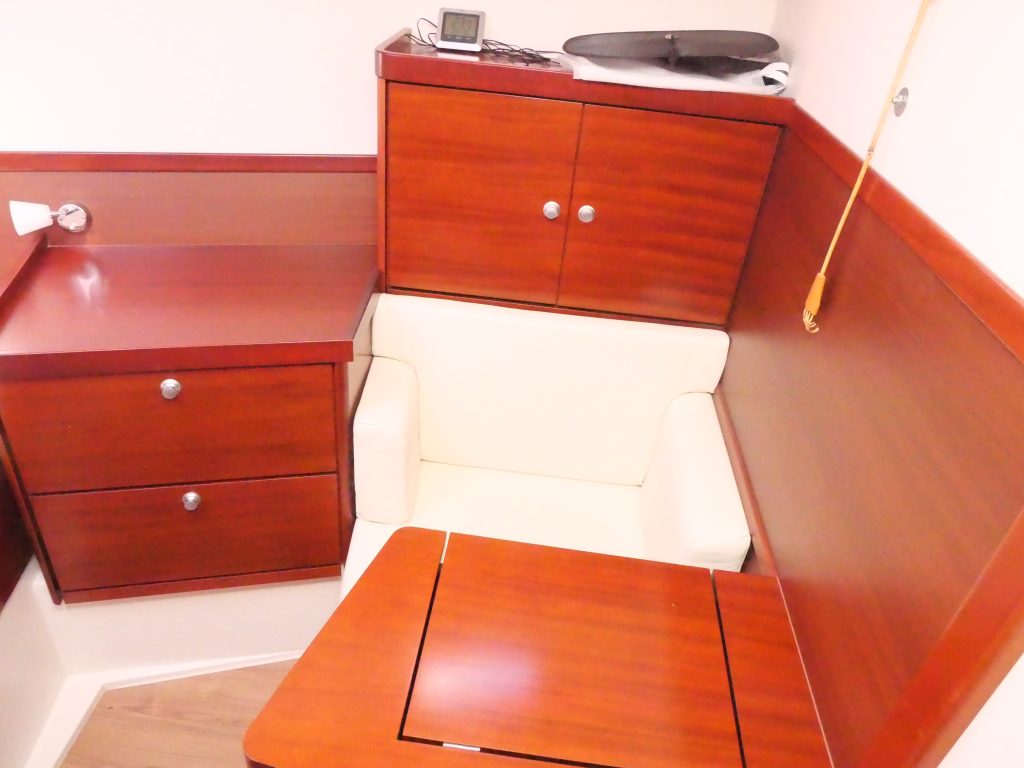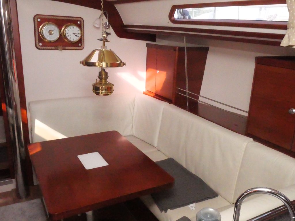 Hanse 400 e är epoxy tillverkat skrov som har många bra egenheter. 400 kg lättare och ett tätare skrov och botten bland annat. Dom berömda konstruktörerna Judel/Vrolijk satte sin prägel på linjer, fart layout och det blev en säljsuccé med stora volymer, Trots sina 40 fot seglar man lätt båten själv med den själv slående focken och rorsman har tillgänglighet till alla trim funktioner från sin position bakom ratten för att segla enkelt optimalt och bekvämt. Alla bekvämligheter för ett enkelt och roligt sjöliv finns ombord så som bogpropeller, ankarspel, autopilot, instrument och härlig komfort i kajutan med allt som behövs. Stor härlig sittbrunn där man har ett extra uterum med det optimala sittbrunns kapellet. Invändigt finns dubbla akter kabiner med dubbel kojer, stor härlig förpik med sittplats och sminkspegel, salongen består av u-soffa på styr bord och 2 fåtöljer på babord med bord i mellan. Akter om detta på babord sida finns stor toalett med dusch.