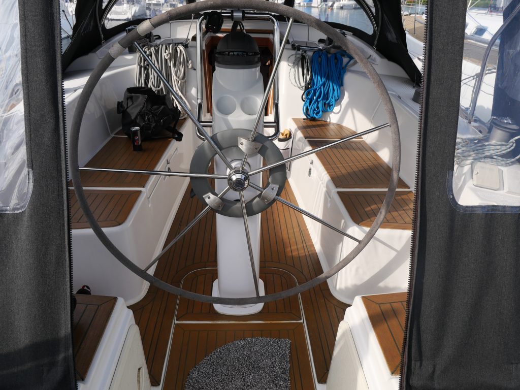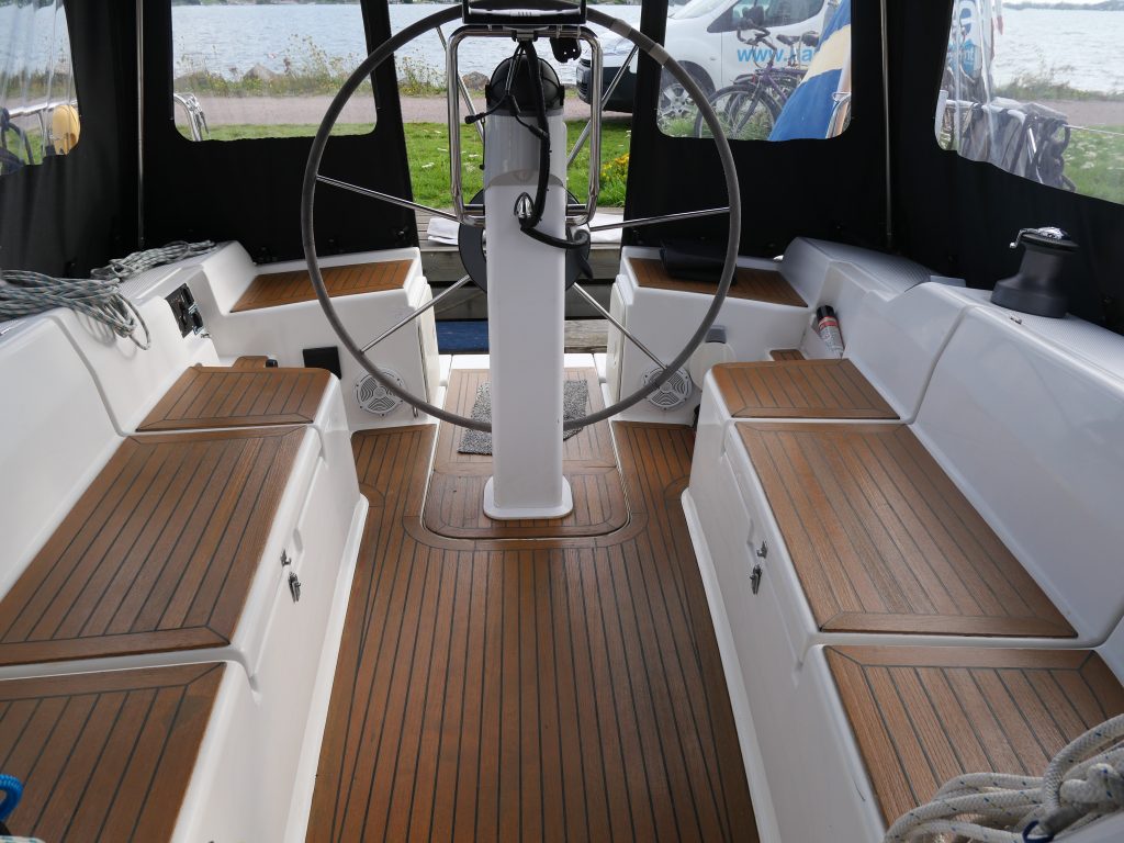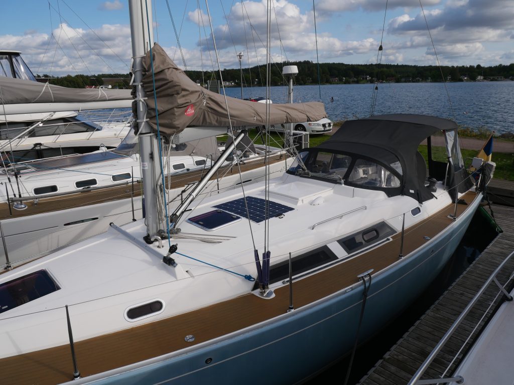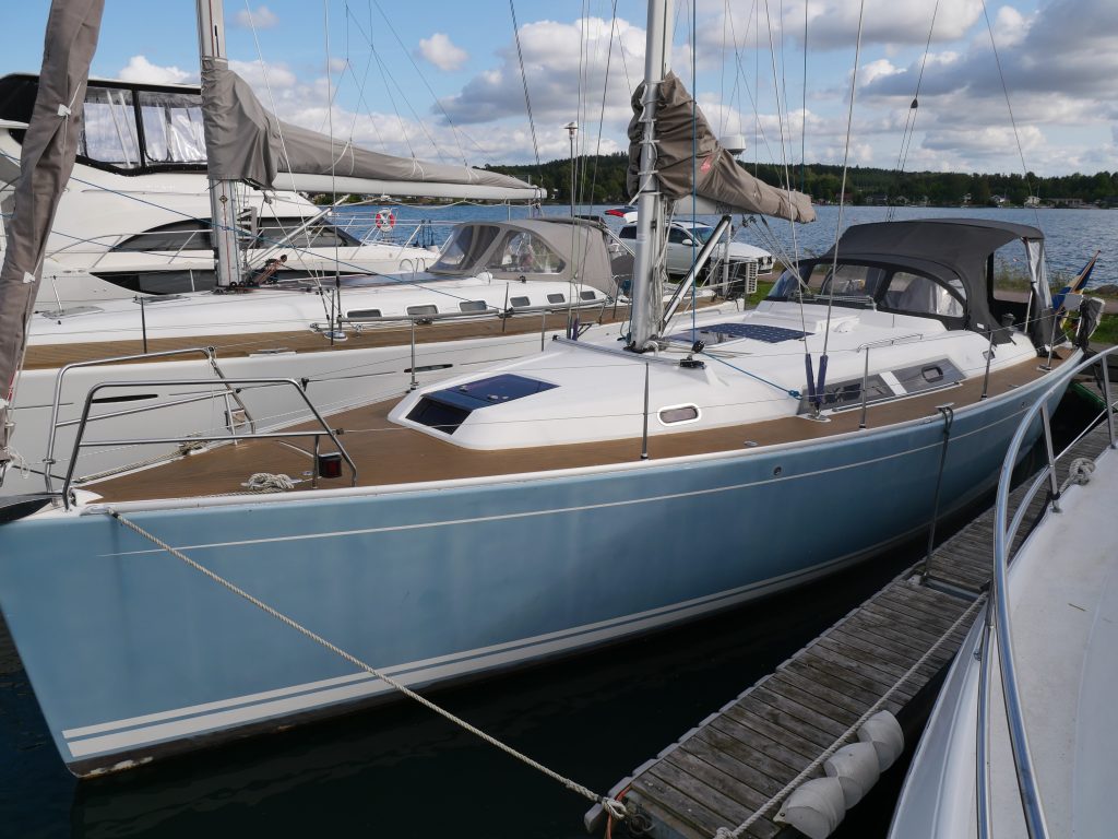 Hanse 400 e med härliga seglingegenskaper och 3 kabins version. Uppdaterat och välskött av andra ägaren som har haft båten från 2009.Sötvattenseglad till största delen. Elegant ljusblått skrov med ett välskött behandlat teakdäck