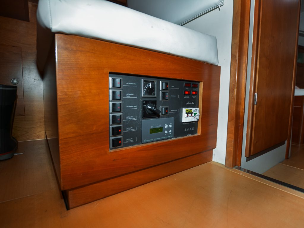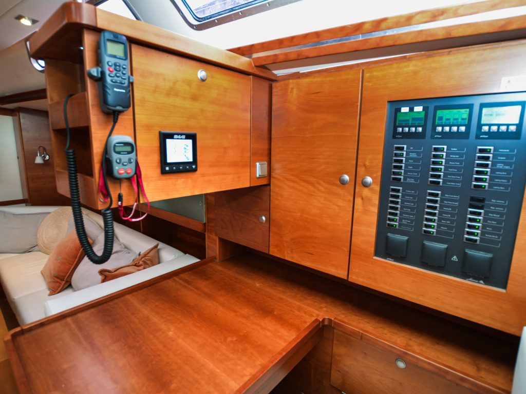 Oikealla puolella sijaitsee navigointipiste, joka toimii erinomaisesti myös “toimistona” veneessä.