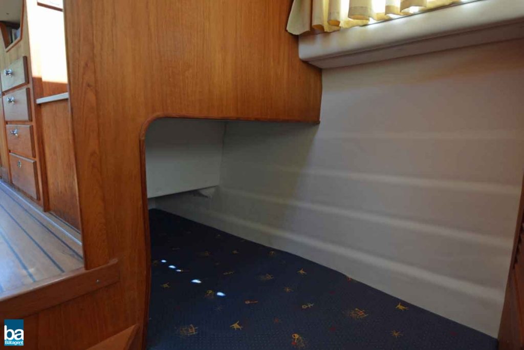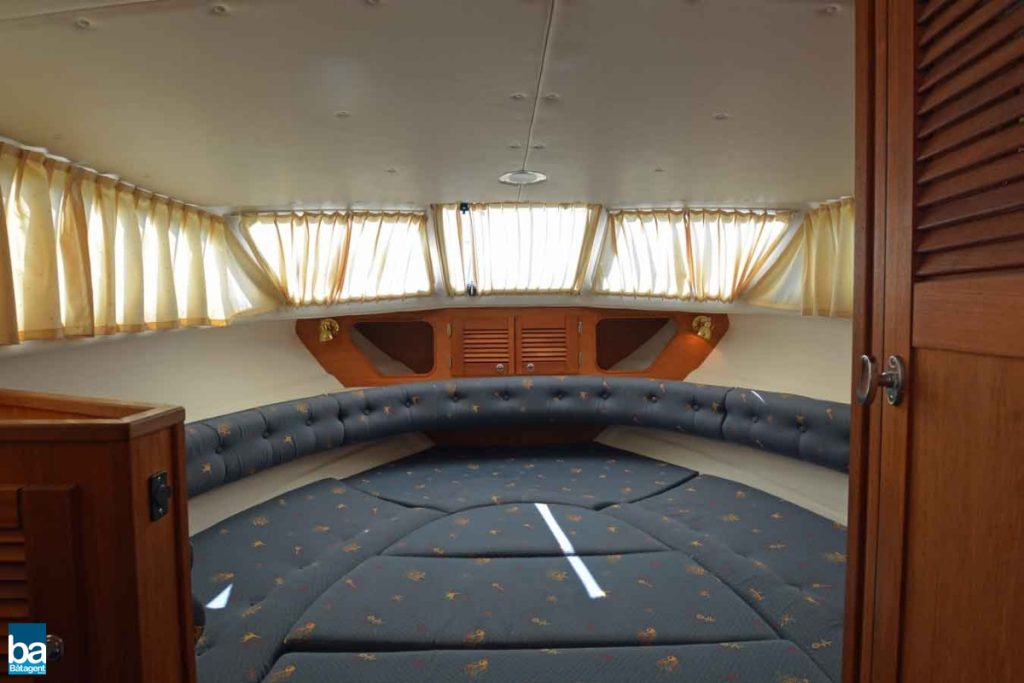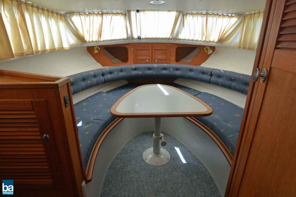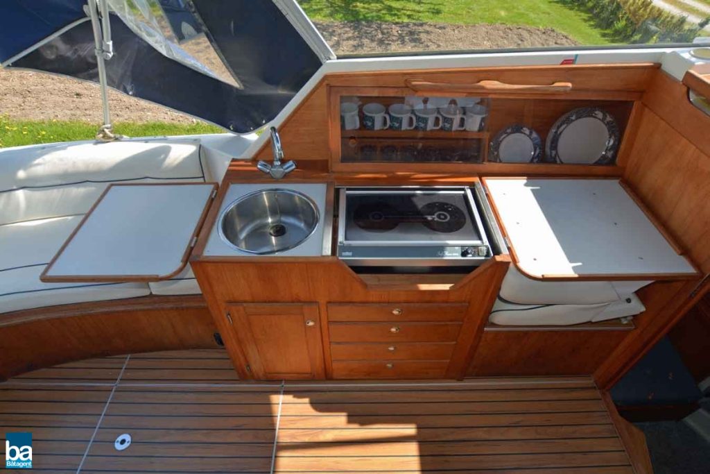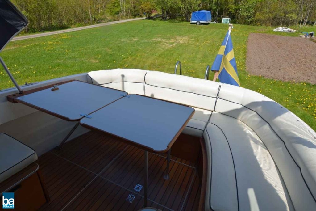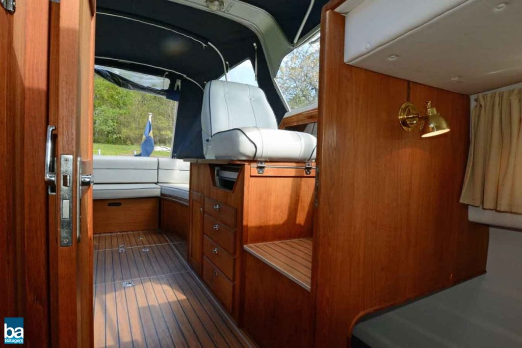 Låga driftskostnader med halvplanande skrov, med en fart på 12-14kn blir bränsleekonomin goda 0.6 l/distans, och med en marschfart som denna blir även resan trivsam utan att ta alltför lång tid. Smart planlösning med L-soffa och stort sittbrunnsbord. Härlig träkänsla och gott om stuvutrymmen, och med ett enkelt handgrepp förvandlas L-soffan till en rymlig solbädd.