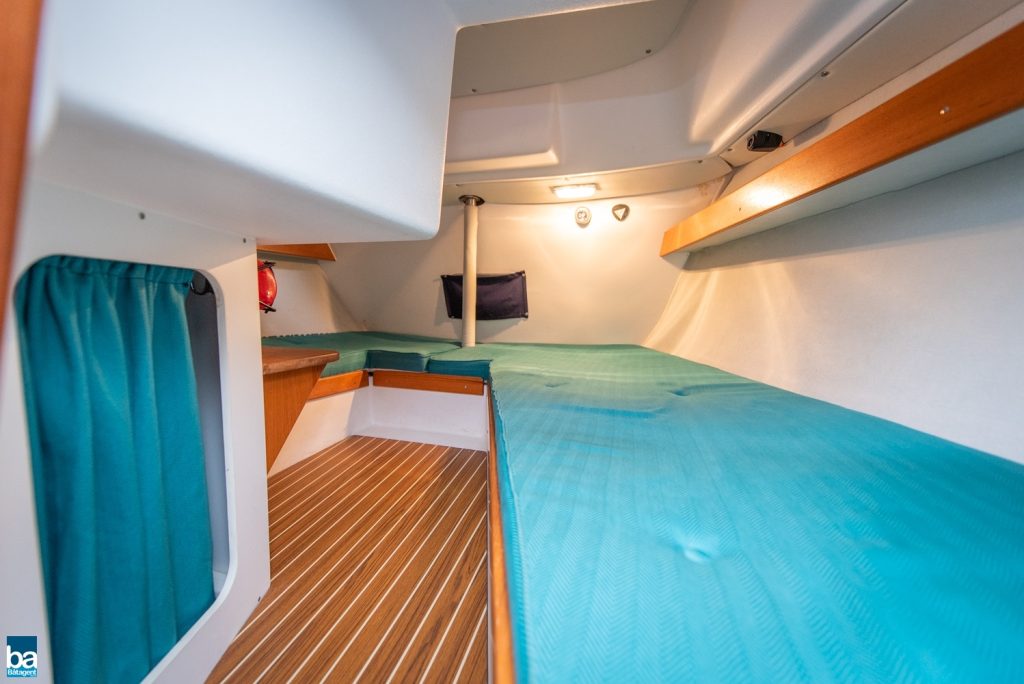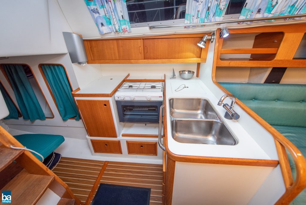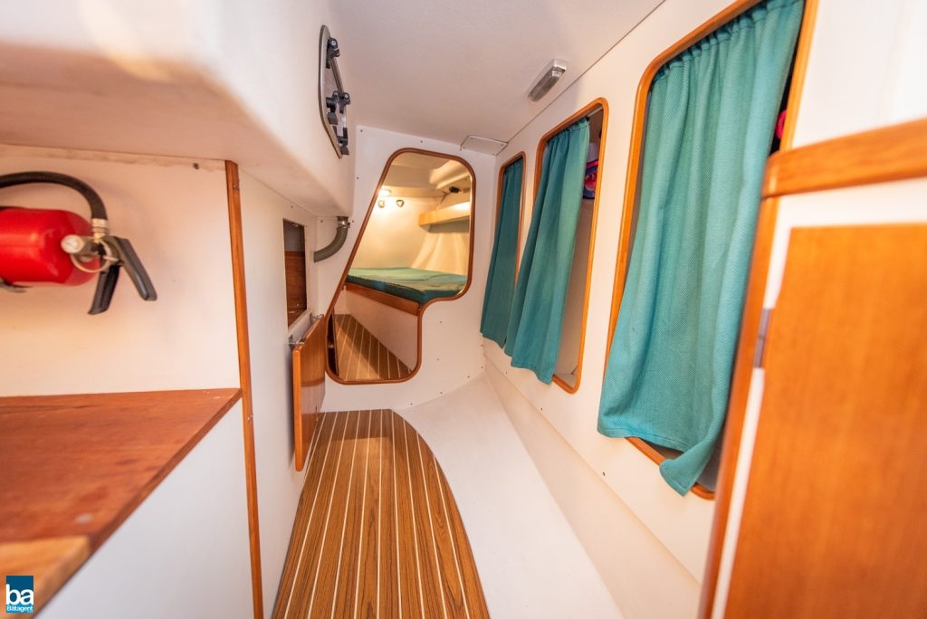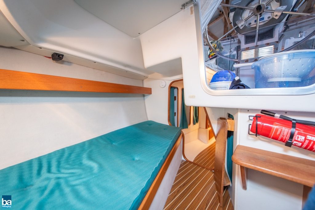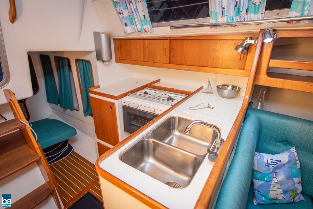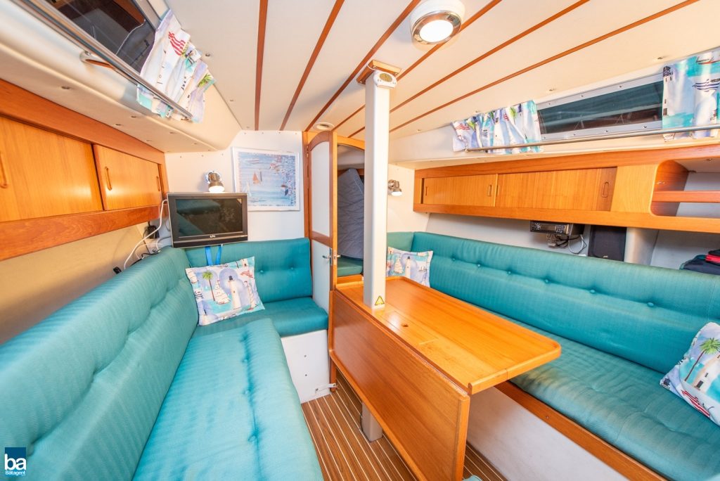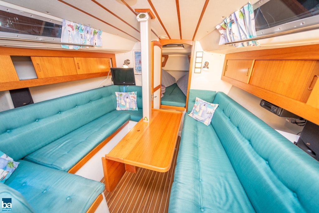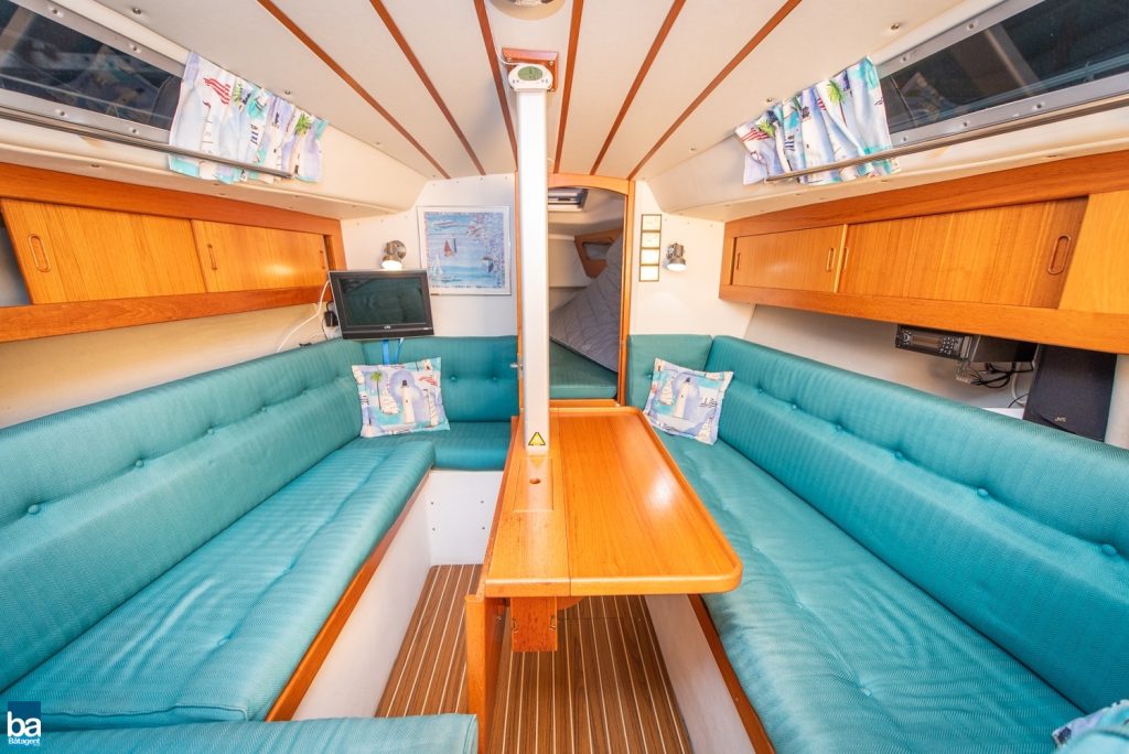 Maxi 34 är en genomgående stabil segelbåt med mittsittbrunn där besättningen sitter tryggt och bekvämt när väder och vind ger sig till känna ute på havet. Sittbrunnen ryms mellan den vanliga ruffen och akterkabinen som har både en egen nedgång från sittbrunnen samt en gång in från övriga ruffen. Direkt babord om nedgången finns ett L-pentry med dubbla hoar, och mittemot pentryt är toalett samt ett navigationsbord. Salongen består av en längsgående soffa, en soffa samt ett bord emellan. För över finns den främre kabinen med plats för två. Båten är en trygg seglare och passar perfekt till såväl familjen eller paret som drömmer om långa härliga semestrar på havet.