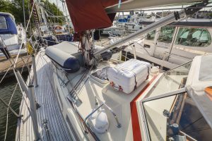 Kansijärjestely on hyvin suunniteltu ja tekee purjehduksesta helppoa ja hallittavaa myös pienellä miehistöllä.