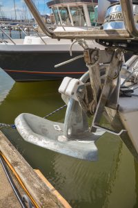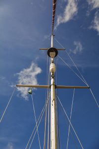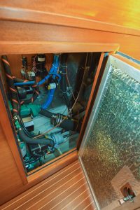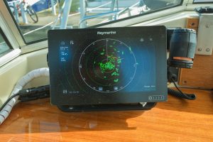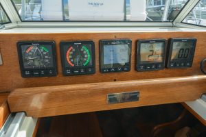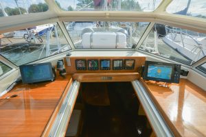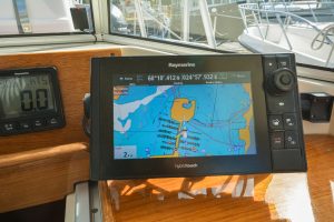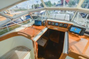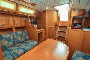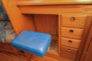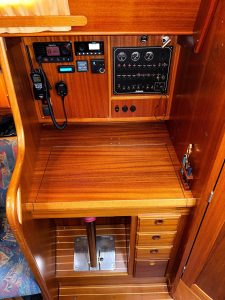 WC:n edessä sijaitsee navigointipiste, joka toimii nykyään usein myös veneen “toimistona”.