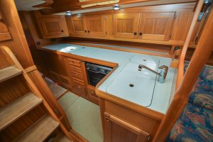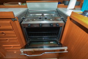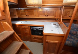Pitkittäinen pentteri on sijoitettu kulkuväylään perään ja se on hyvin varusteltu muun muassa kaasuliedellä uuneineen, kahdella syvällä altaalla, suurella ja helposti käytettävällä kylmäboksilla sekä runsailla fiksuilla säilytysratkaisuilla.