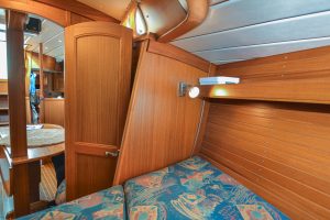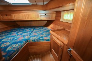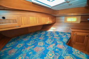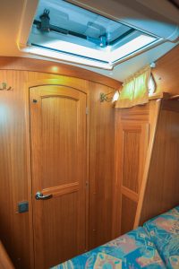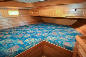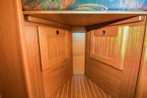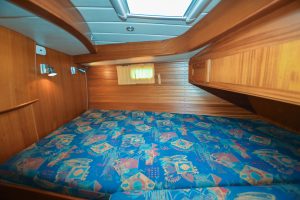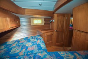 Perässä sijaitsee ylellinen omistajanhytti, jossa on leveä parisänky ja paljon kaappitilaa.