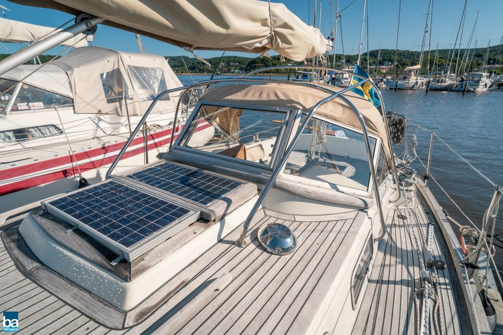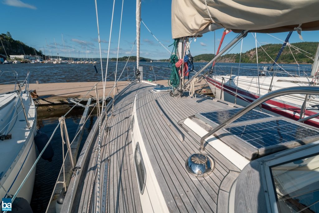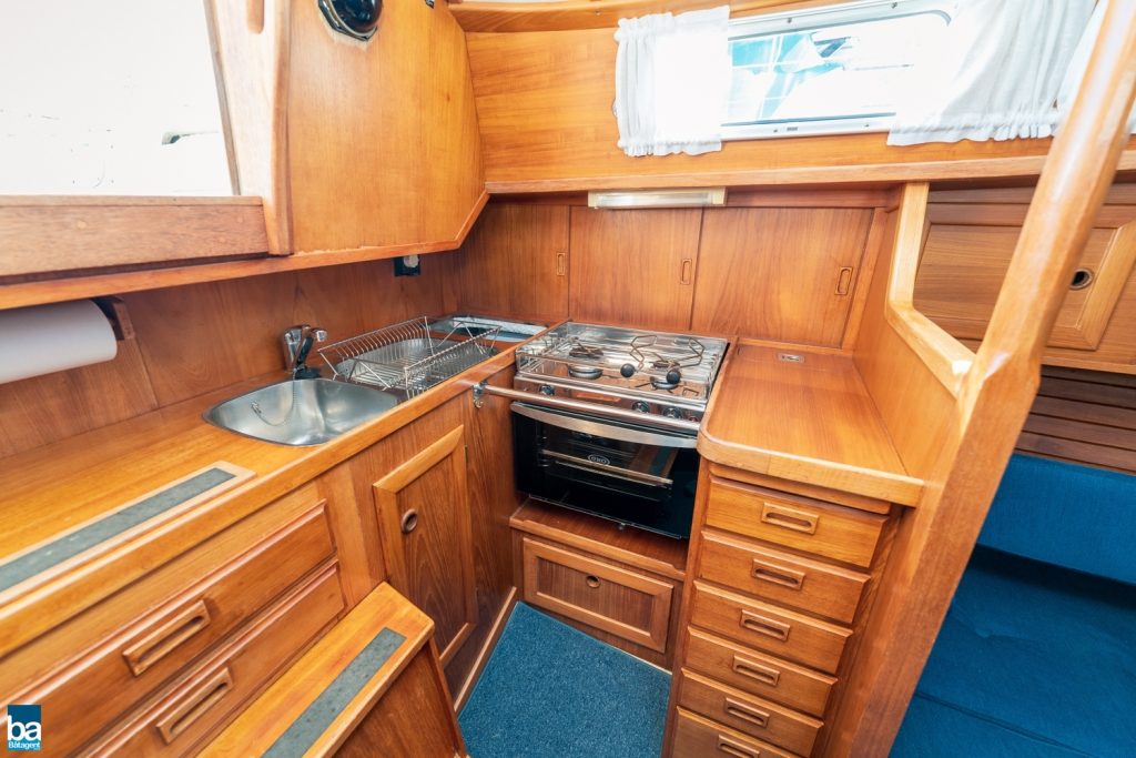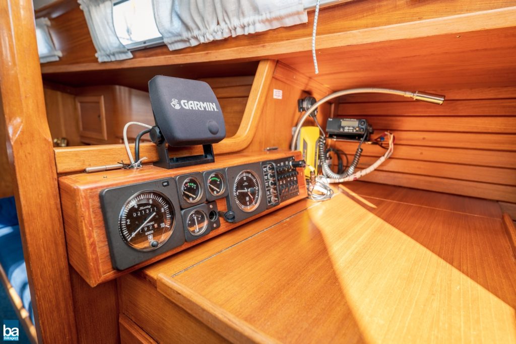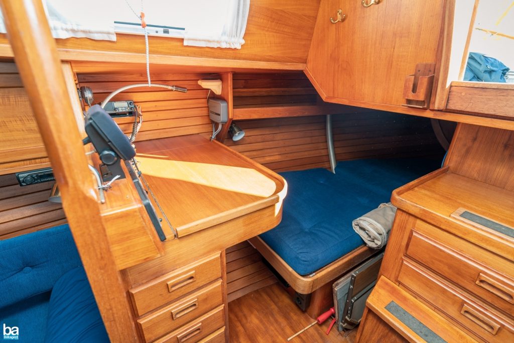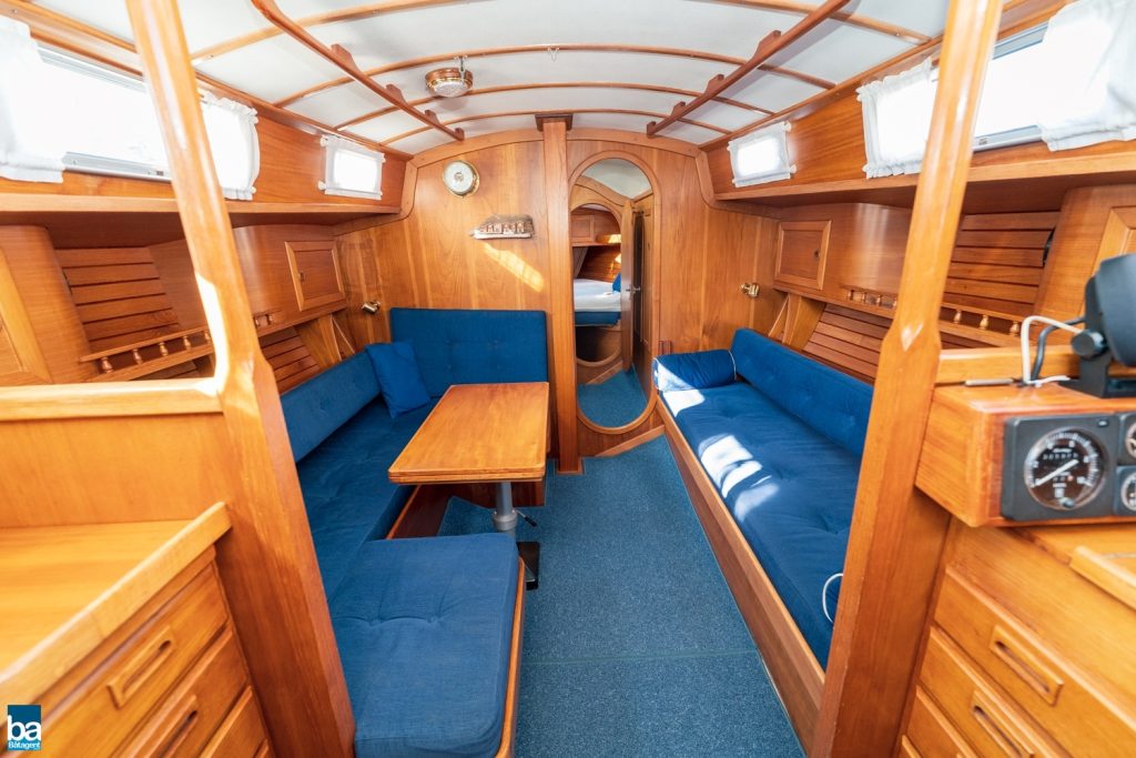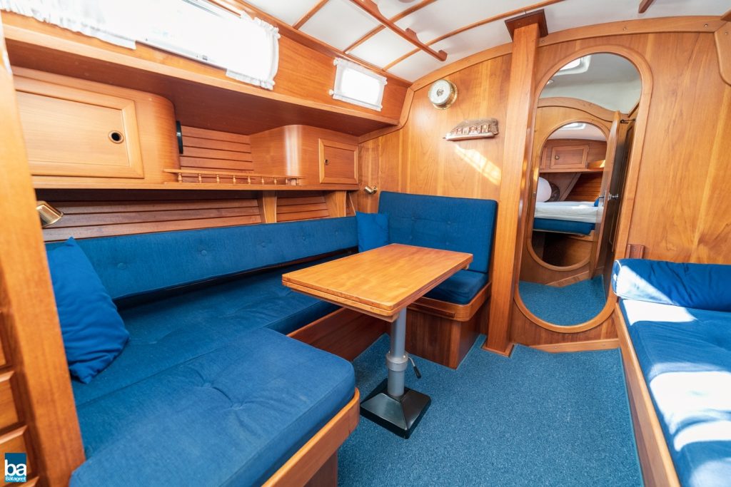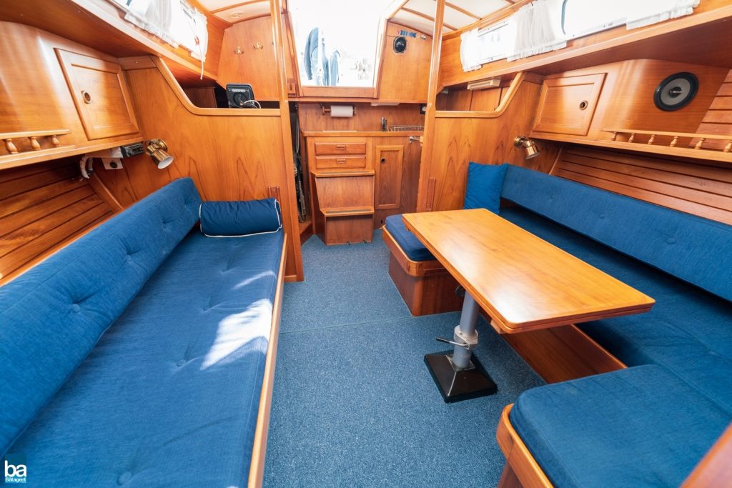 Totalt har båten 6 kojplatser medräknat sofforna i salongen där ryggstöden kan flyttas för att skapa fullstora kojplatser. Planlösningen är klassisk med en stickkoj direkt styrbord om nedgången och det L-formade pentryt om babord. Framför salongen ryms toaletten och ytterligare ett kliv föröver kommer man in i den främre kabinen med en dubbelkoj. Sittbrunnen är rymlig och trygg att sitta i. Inredningen i denna båten håller hög standard med bland annat garnering i liggande teakribb istället för matta på skrovsidorna.