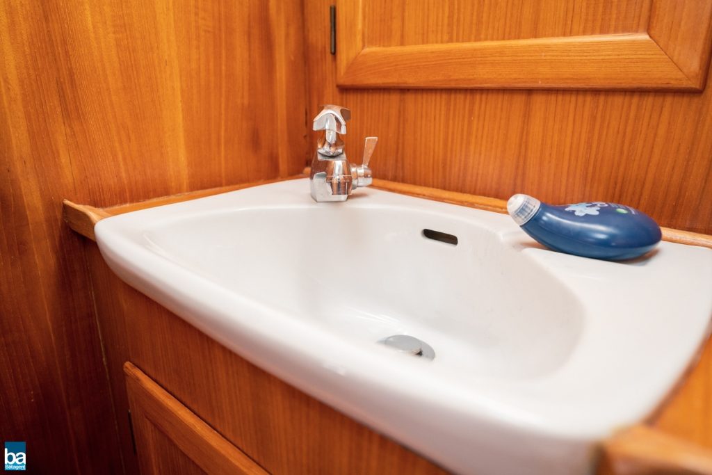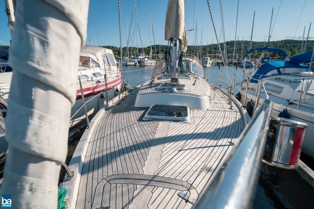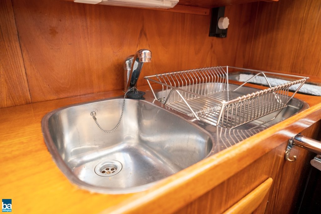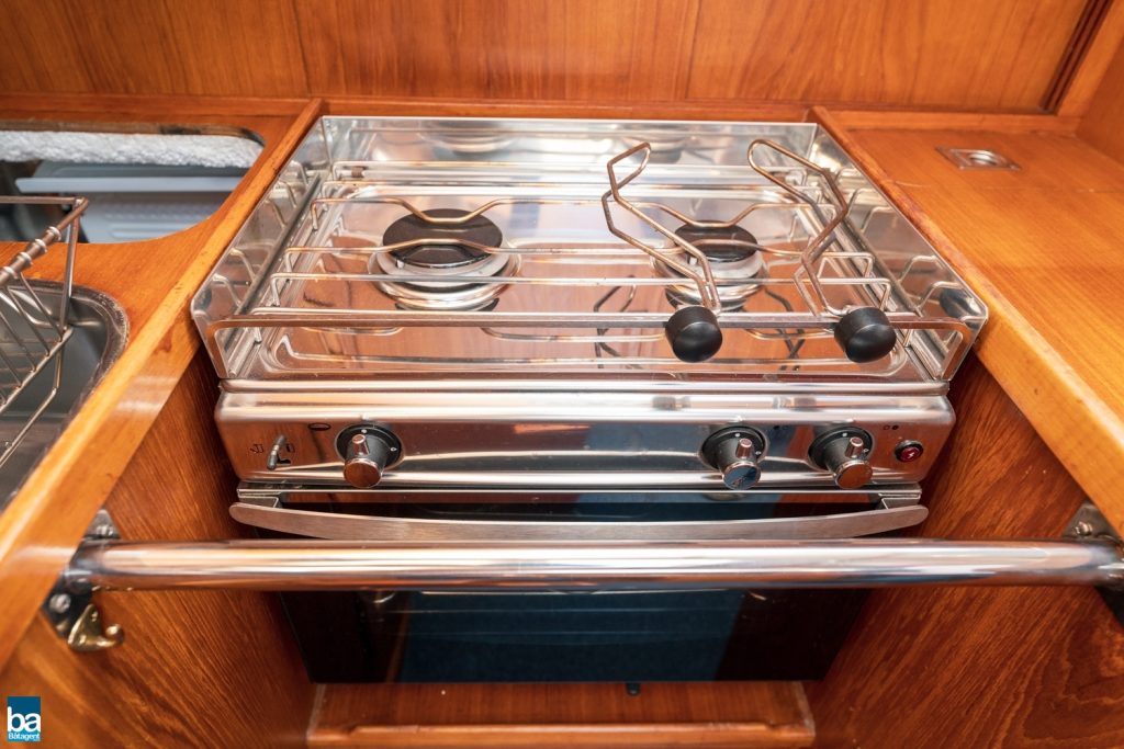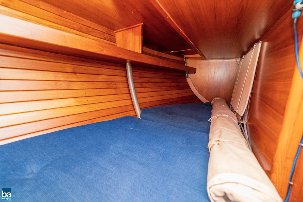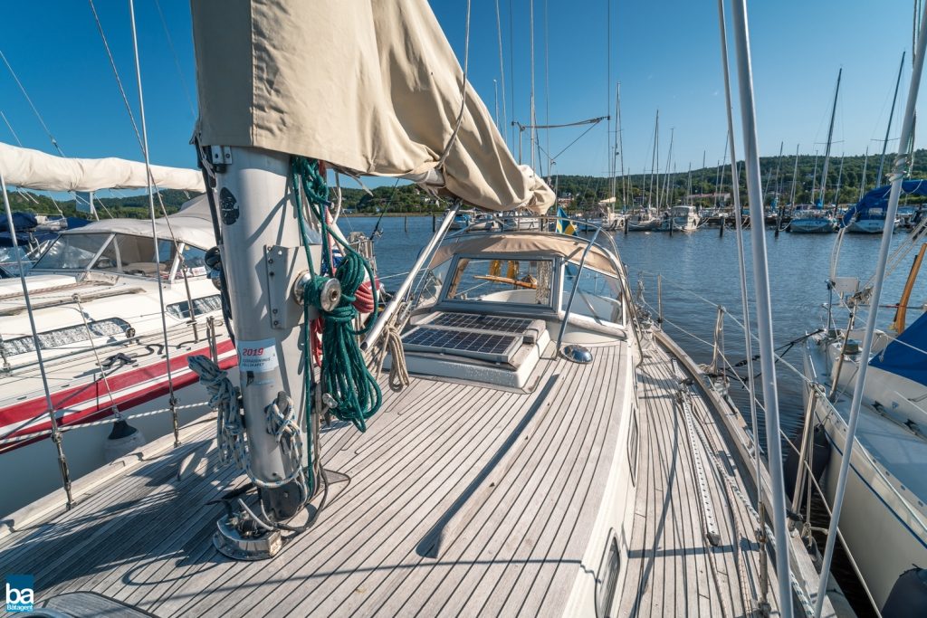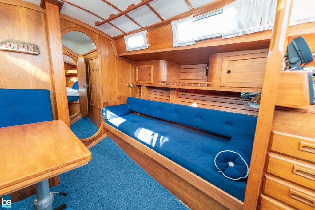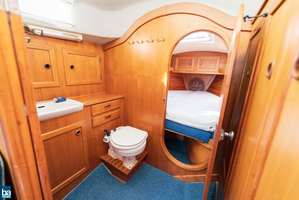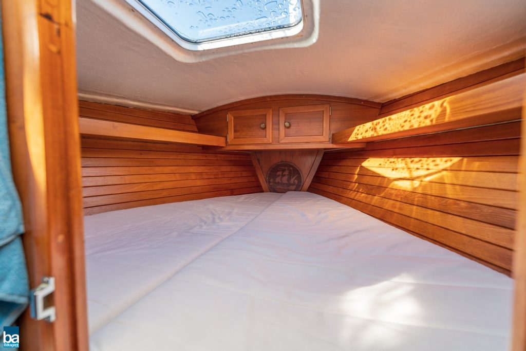 Totalt har båten 6 kojplatser medräknat sofforna i salongen där ryggstöden kan flyttas för att skapa fullstora kojplatser. Planlösningen är klassisk med en stickkoj direkt styrbord om nedgången och det L-formade pentryt om babord. Framför salongen ryms toaletten och ytterligare ett kliv föröver kommer man in i den främre kabinen med en dubbelkoj. Sittbrunnen är rymlig och trygg att sitta i. Inredningen i denna båten håller hög standard med bland annat garnering i liggande teakribb istället för matta på skrovsidorna.