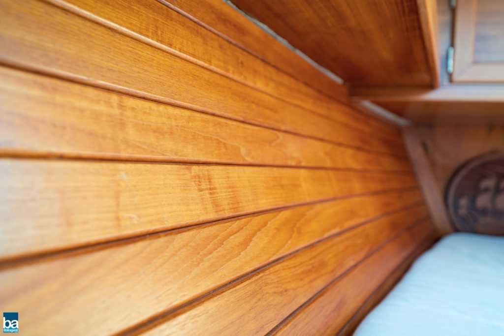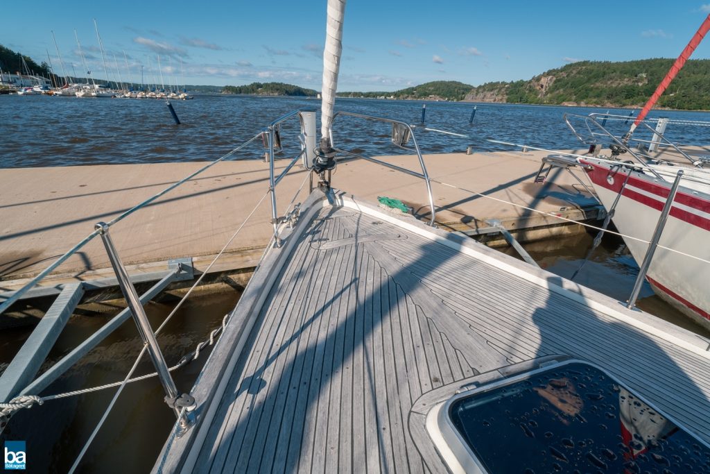 Teakdäcket har besiktigats av auktoriserad besiktningsman hösten 2021 med gott resultat. Sånär som på någon enstaka ribba sitter teaken tajt mot däcket och är torrt. Sedvanligt underhållsarbete med byte av plugg och nåt på några ställen överlåtes till köparen.