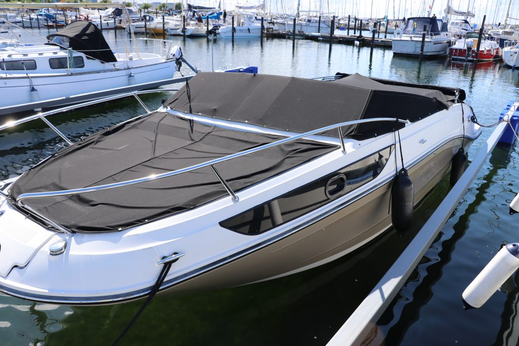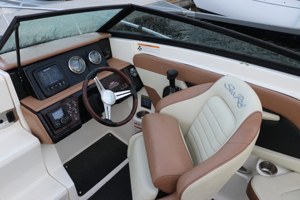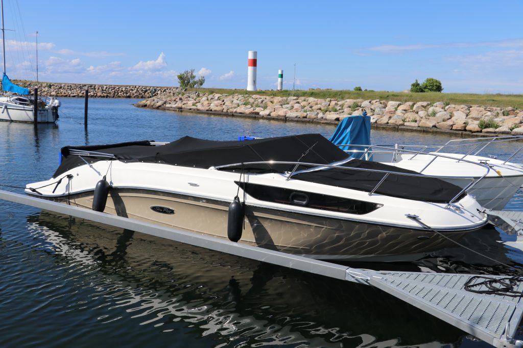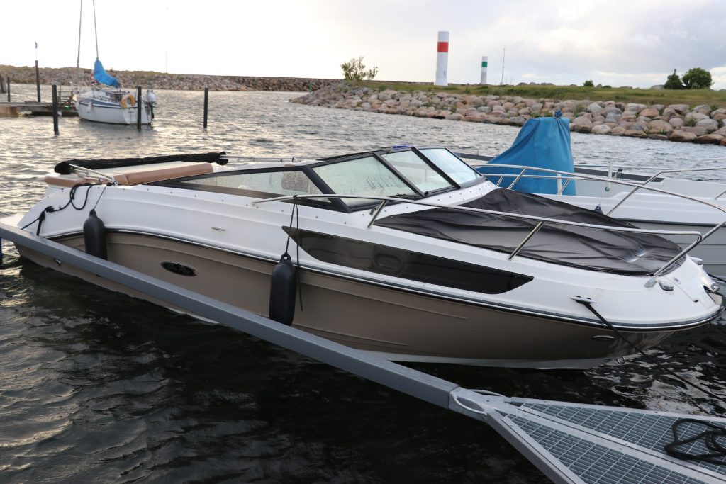 Denna eleganta, bekväma och snabba SeaRay 230 från 2017 är i mycket gott skick och har väldigt få motortimmar (270 timmar). Servicen har utförts professionellt varje år och i år levereras båten med en ny dubbelpropeller i aluminium, skrovet har nymålats och båten sjösattes den 22 maj.