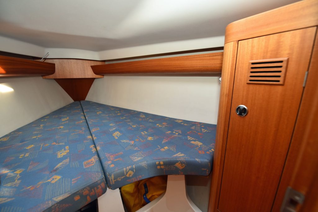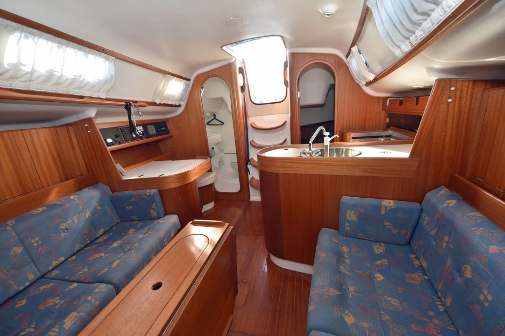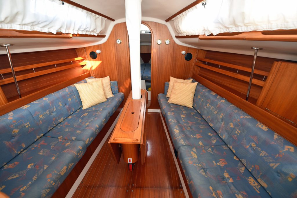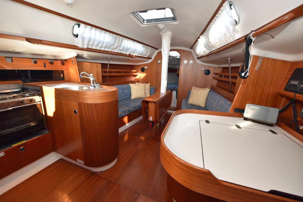 Sittbrunnen är väldisponerad med god åtkomst till vinschar och bra utsikt föröver. Under däck är båten fint inredd med förvånansvärt god volym. Båten rymmer förutom salong och ett L-pentry en förkabin och en akterkabin med dubbelkoj i vardera kabin.